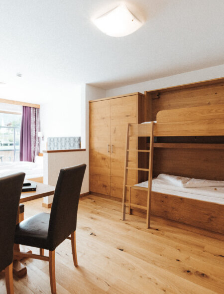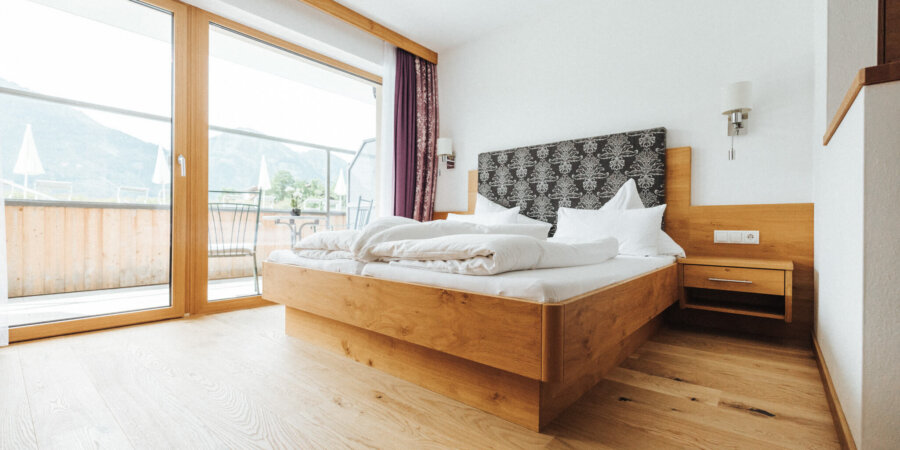 Die Panorama-Doppelzimmer und die Gartenzimmer, sowie die Waldblick-Doppelzimmer und die Einzelzimmer befinden sich im Haupthaus. Hier sind auch das Restaurant, der Wellnessbereich sowie der Pool.